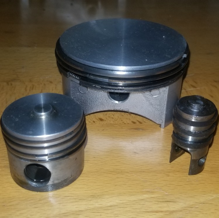 Piston: The piston is driven mechanically and moves up and down. It’s downward movement draws air into the cylinder via the intake valve. When the piston moves upwards in the cylinder, it compresses the volume of air above it and pushes it out via the exhaust valve. The piston is usually fitted with rings which help make a seal with the cylinder wall.