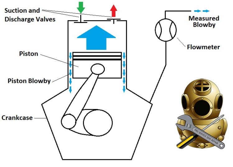 A certain amount of blow-by is normal however excessive amounts indicate worn components that should be replaced. If a compressor has excessive blow-by, the volumetric efficiency is reduced. At the user end, a reduced filling rate might even be noticed.