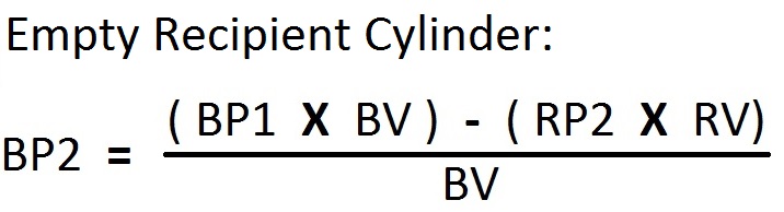 Useful for determining if there is enough banked gas to just decant or if a gas booster pump will be needed. The calculations are split in two. One is for an empty recipient cylinder. The second is for a recipient cylinder with residual gas in. If the BP2 is greater than the RP2 then no gas booster pump is required.